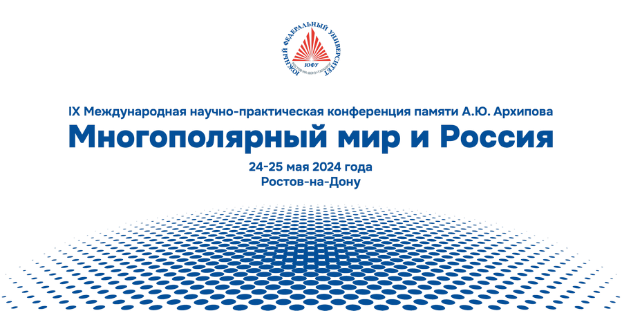 Южный федеральный университет приглашает Вас принять участие в работе IX Международной научно-практической конференции памяти А.Ю. Архипова «Многополярный мир и Россия», которая состоится в Ростовe-на-Дону 24-25 мая 2024 года.